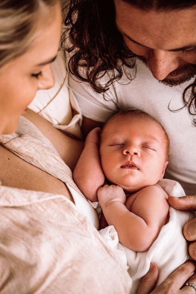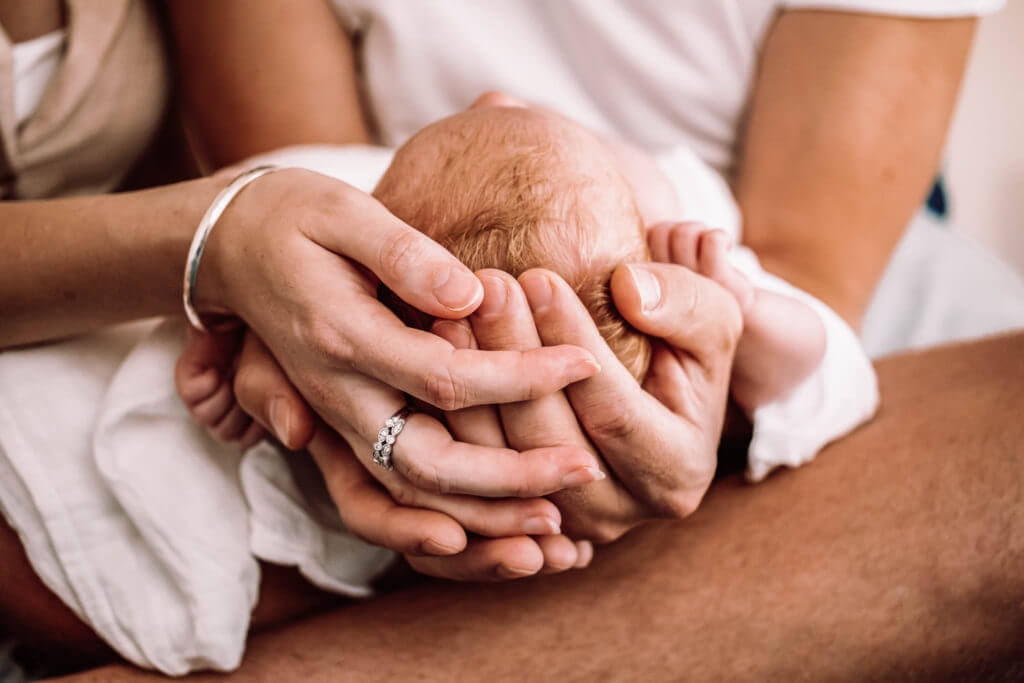 - Look for creative frames: e.g. parents side by side from the back, have them lean their heads together, and focus on baby through the triangle formed by their heads and shoulders.