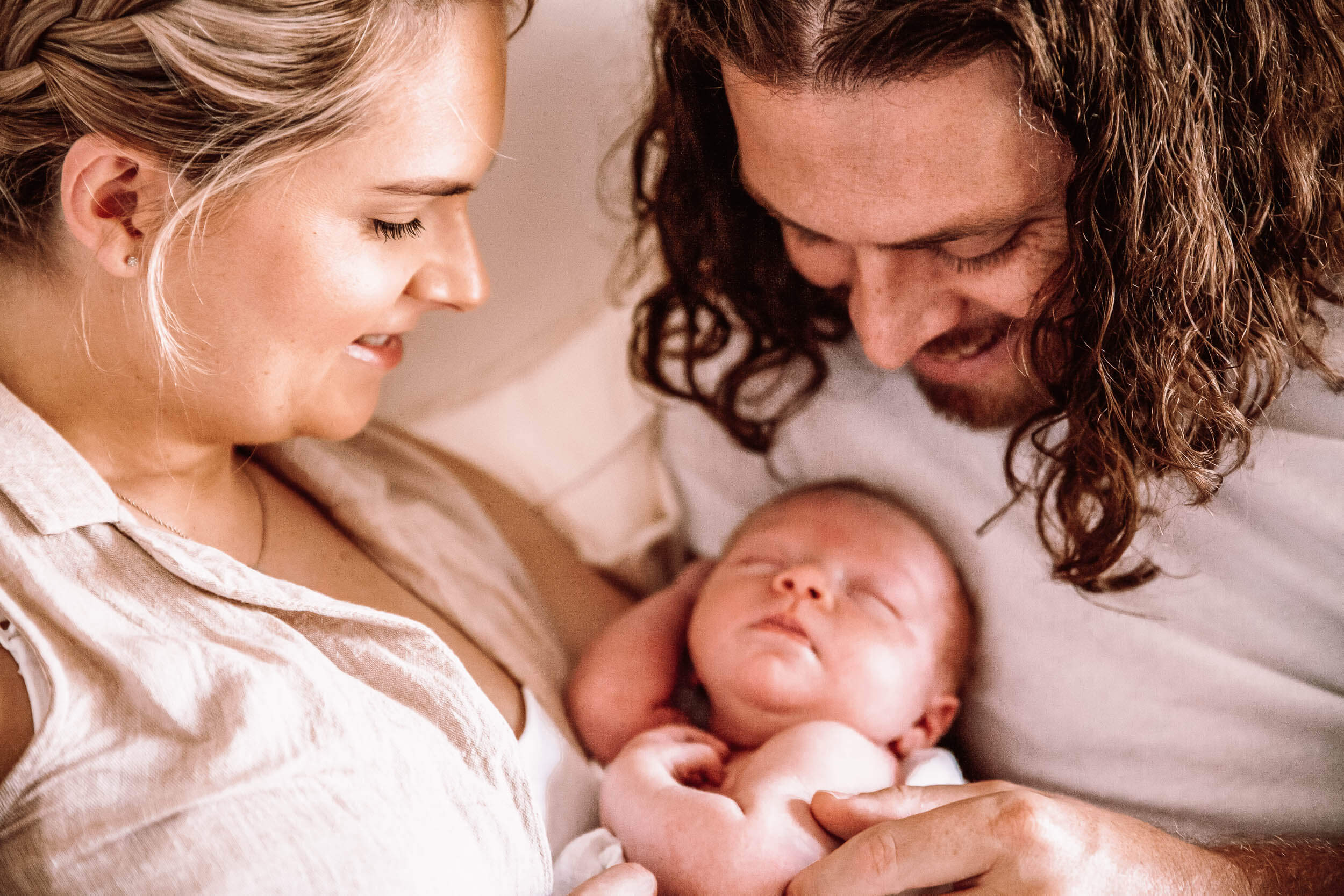 - Baby breastfeeding (check with Mum first): Mum looking down at baby, baby’s face close up, baby’s hands on breast, parents smiling at each other while baby feeds.