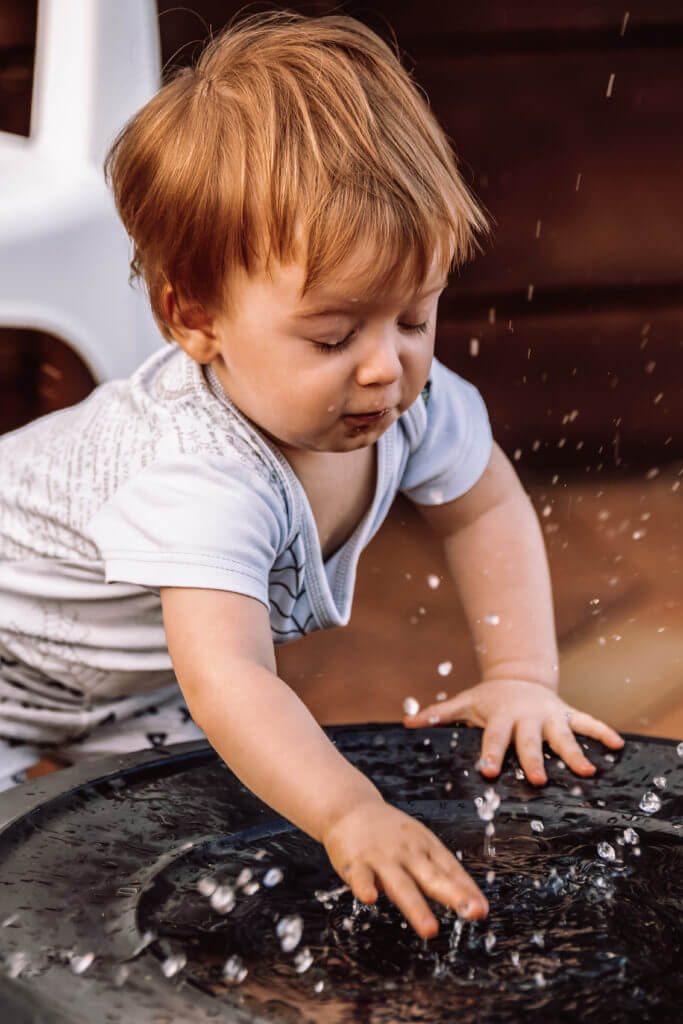- Upturn a plastic container with a flat base, cover it with water, then let the kids play it like a drum.